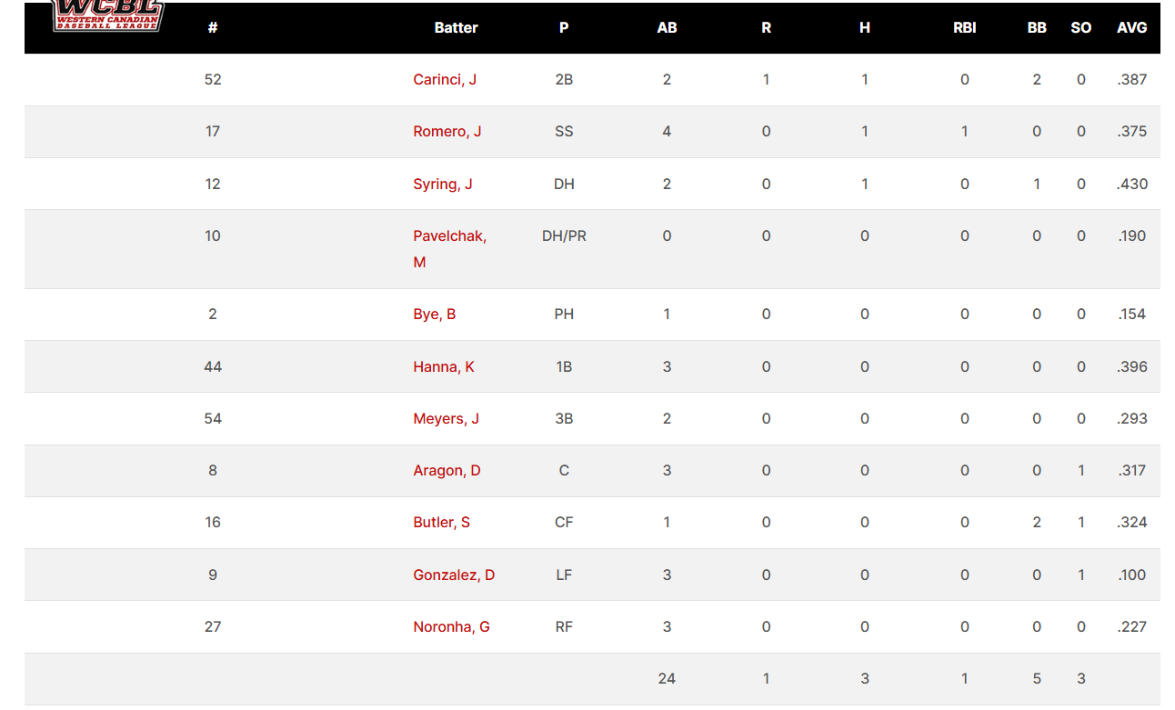 Sox starter Colten Anderson took his first loss of the season, and his record is now 4-1 on 6 starts. Ayden Page pitched for the second time since joining the team last week. Ayden pitched 2.2 innings and allowed 0 runs on 3 hits and struck out 3 Saskatoon batters.