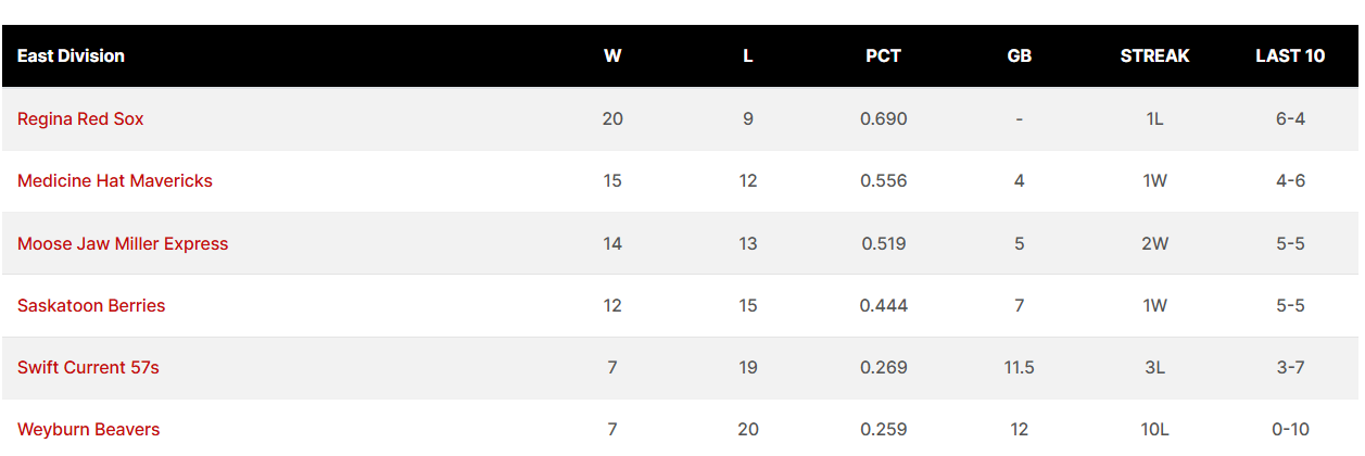 The Sox record goes to 20-9 PCT 0.690 and are 6-4 in their last 10 games. They sit on top of the East Division standings.